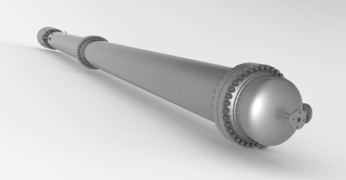 管殼式換熱器由殼體、管板、傳熱管束、擋板和管箱等部件組成。殼體大多圓筒形,內(nèi)部裝有平行管束,管束兩端固定于管板上。在設(shè)備內(nèi)進(jìn)行換熱的兩種流體,一種在管內(nèi)流動(dòng),稱(chēng)為管程流體;另一種在管外流動(dòng),稱(chēng)為殼程流體。為提高管外流體的傳熱分系數(shù),通常在殼體內(nèi)安裝特定數(shù)量的擋板。這種換熱器結(jié)構(gòu)簡(jiǎn)單、造價(jià)低、流通截面較寬、易于清洗水垢:主要以金屬材料為主,能在高溫、高壓下使用,是應(yīng)用廣的類(lèi)型。