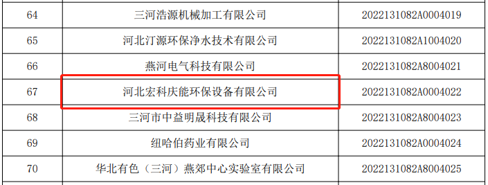 河北省2022年第四批入庫科技型中小企業(yè)名單