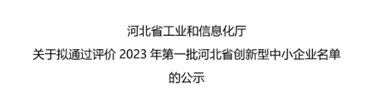 3月15日,河北省工業(yè)和信息化廳公示了“河北省2023年第一批創(chuàng)新型中小企業(yè)”名單。按照《河北省優(yōu)質(zhì)中小企業(yè)梯度培育管理實施細則》有關(guān)規(guī)定和《關(guān)于做好 2023 年優(yōu)質(zhì)中小企業(yè)信息更新和河北省創(chuàng)新型中小企業(yè)評價工作的通知》要求,市主管部門初審、省工業(yè)和信息化廳復(fù)審。河北宏科慶能環(huán)保設(shè)備有限公司被認定為河北省2023年度“創(chuàng)新型中小企業(yè)”。這是我司在企業(yè)創(chuàng)新領(lǐng)域獲得的又一殊榮!