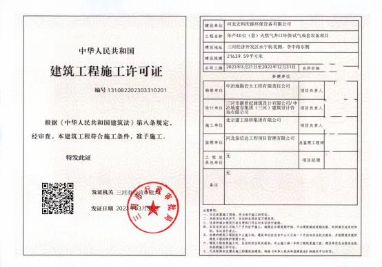 喜報(bào):近日,河北宏科慶能環(huán)保設(shè)備有限公司位于三河經(jīng)濟(jì)開發(fā)區(qū)新廠區(qū)項(xiàng)目拿到了建筑工程施工許可證,目前正緊鑼密鼓地進(jìn)行建設(shè)工作,預(yù)計(jì)年底竣工驗(yàn)收并投產(chǎn)。
